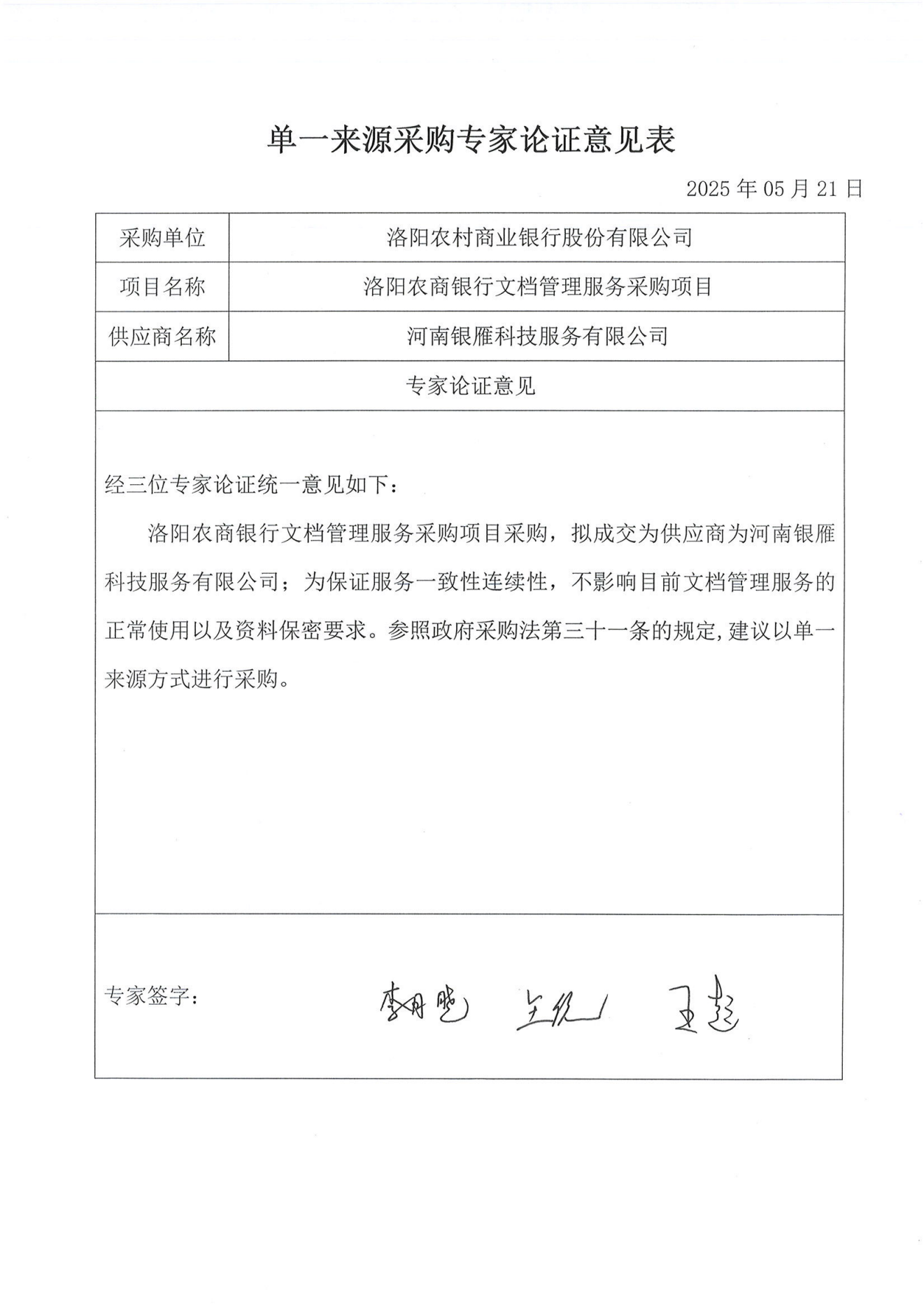 洛陽農商銀行文檔管理服務采購項目單一來源采購公示