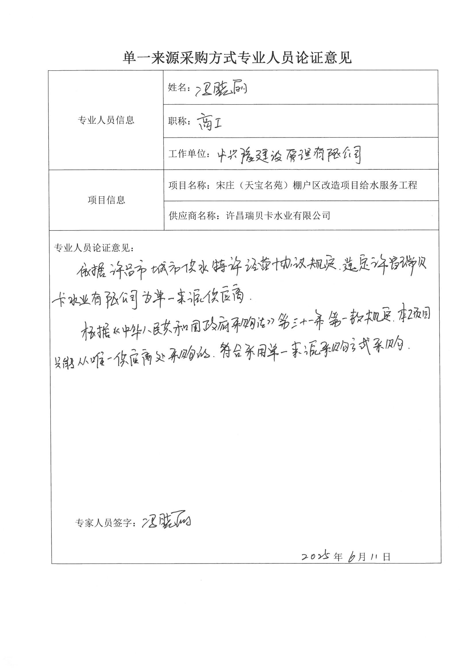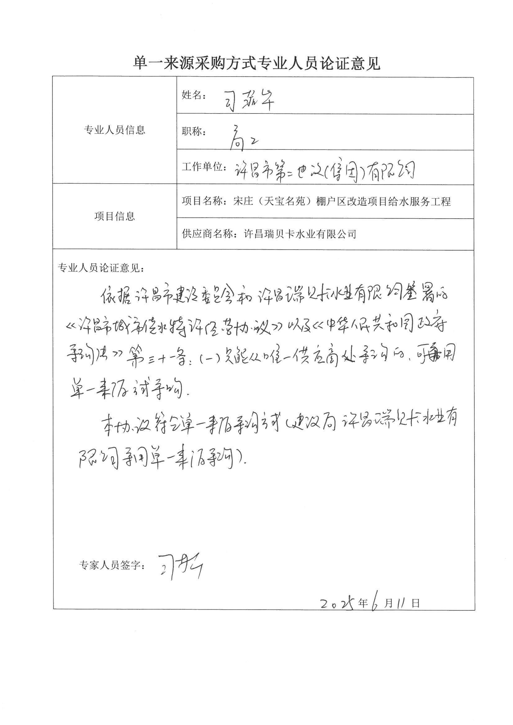 5、單一來源原因及相關(guān)說明:根據(jù)許昌市城市供水特許經(jīng)營協(xié)議,該協(xié)議授權(quán)許昌瑞貝卡水業(yè)有限公司承擔(dān)經(jīng)營區(qū)域范圍內(nèi)設(shè)計、融資、建設(shè)、運營、維護(hù)供水工程的、向用水戶提供服務(wù)并收取費用的權(quán)利。依據(jù)《中華人民共和國政府采購法》第三十一條第一款規(guī)定,本項目建議采用單一來源方式進(jìn)行采購。
