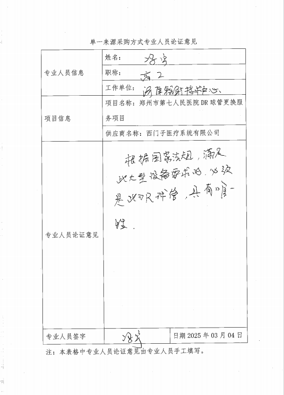 鄭州市第七人民醫(yī)院DR球管更換服務(wù)項目單一來源采購公示