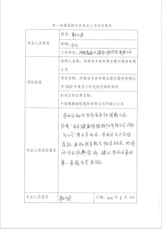1.項目名稱:河南寶豐農(nóng)村商業(yè)銀行股份有限公司2025年度員工補(bǔ)充醫(yī)療保險項目