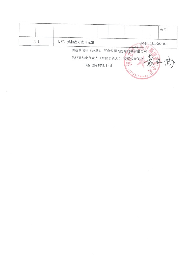 (一)成交候選人名稱:河南省碩飛醫(yī)療器械有限公司