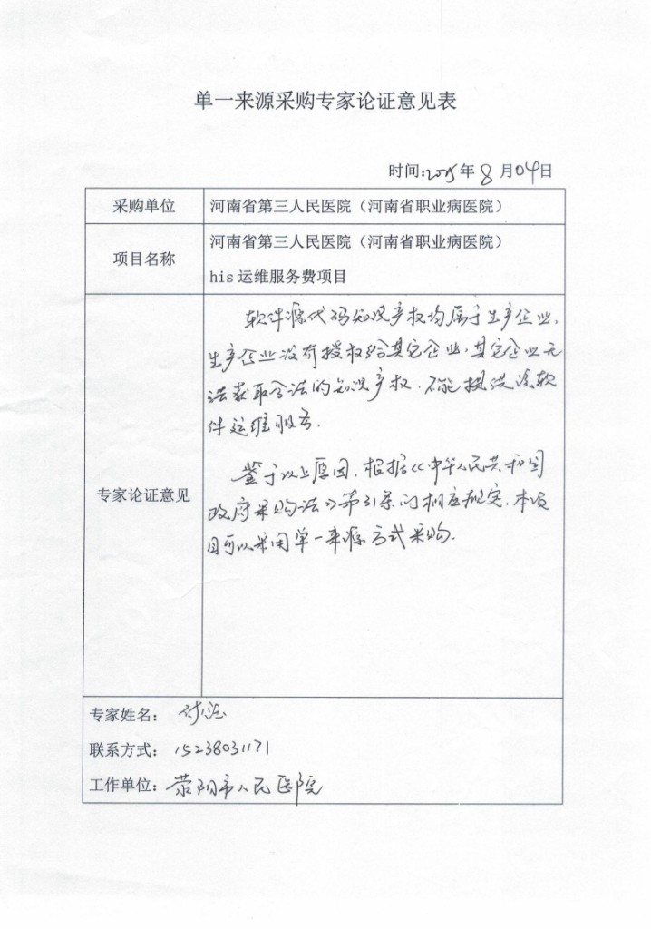 1.項目名稱:河南省第三人民醫(yī)院(河南省職業(yè)病醫(yī)院)HIS運維服務采購項目