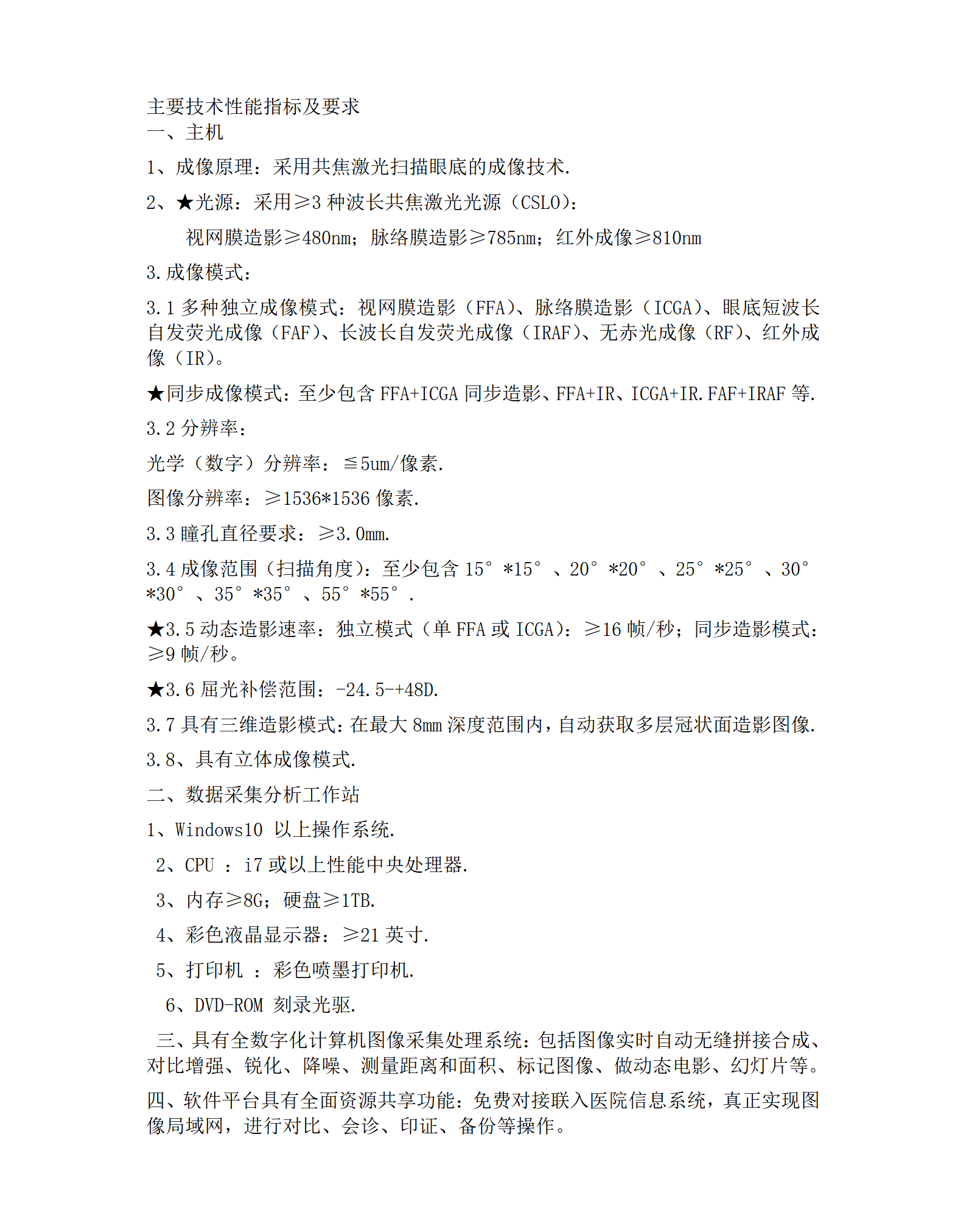附件:1.視網(wǎng)膜脈絡膜同步血管造影機采購項目參數(shù)