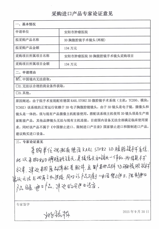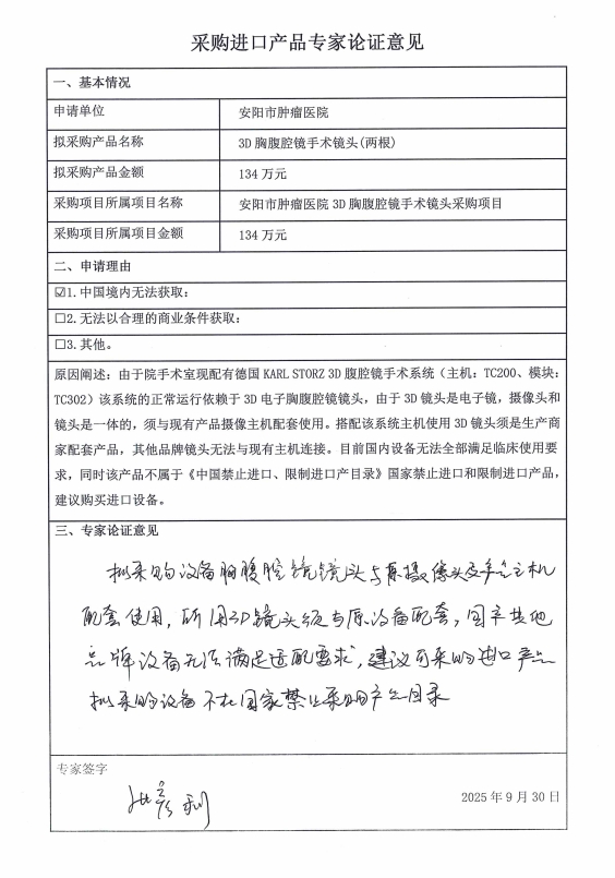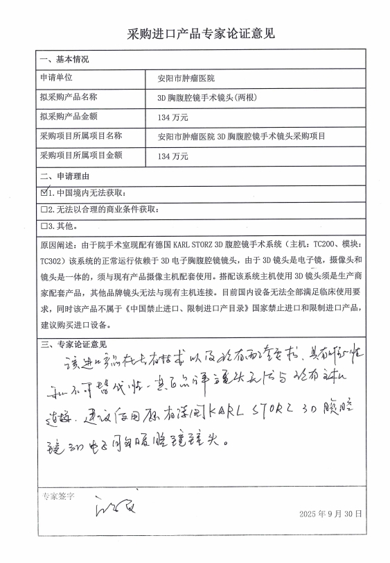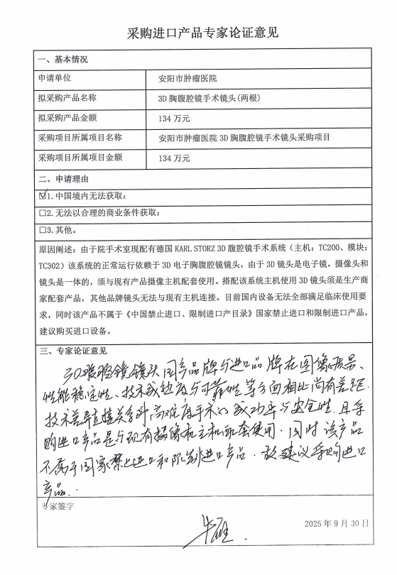 1、項目名稱:安陽市腫瘤醫(yī)院3D胸腹腔鏡手術(shù)鏡頭采購項目