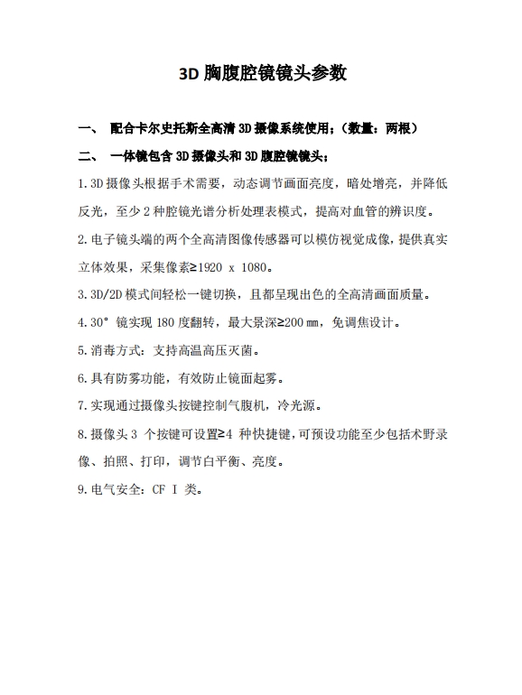 2、擬采購的貨物或服務(wù)的說明:3D胸腹腔鏡手術(shù)鏡頭兩根