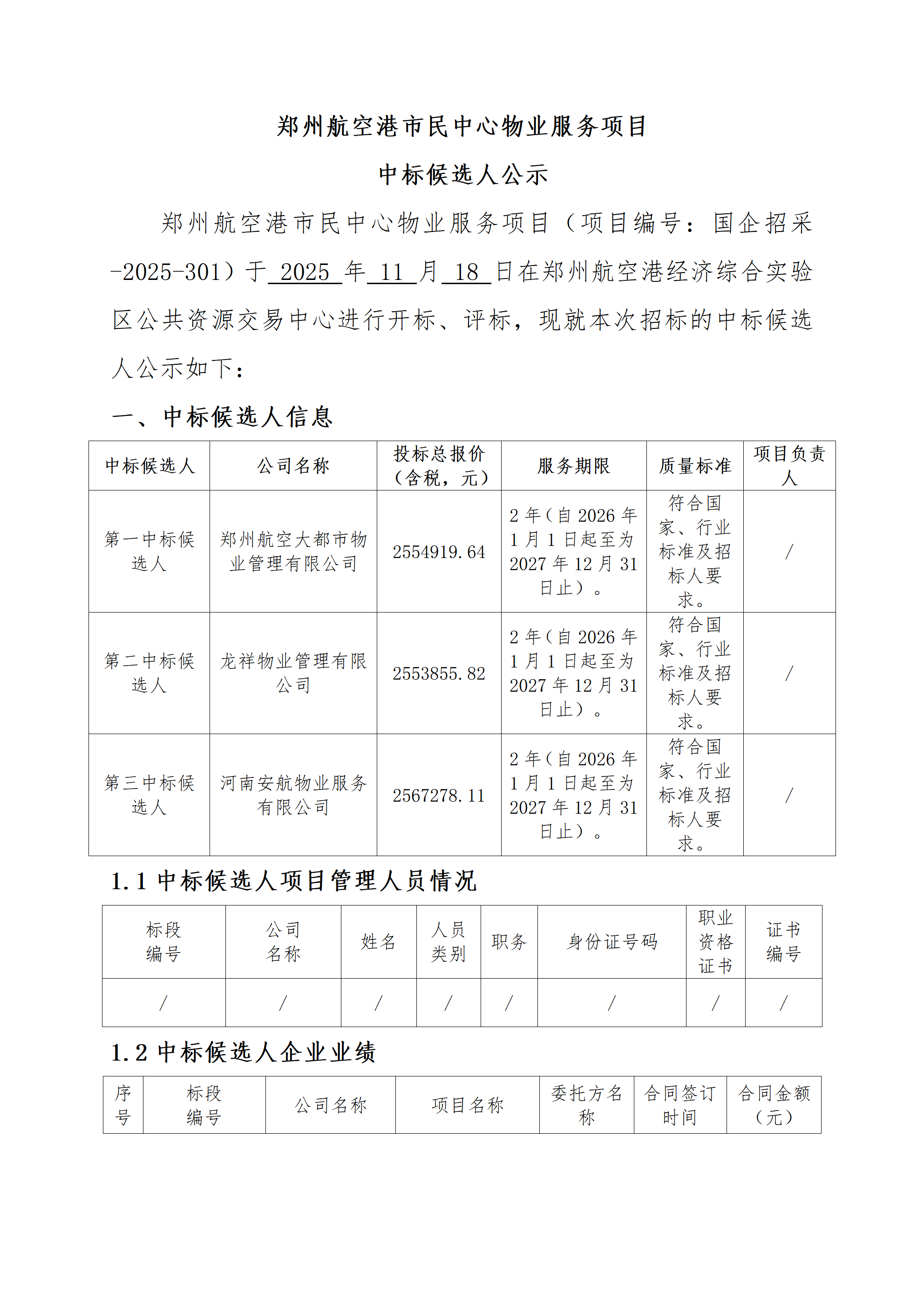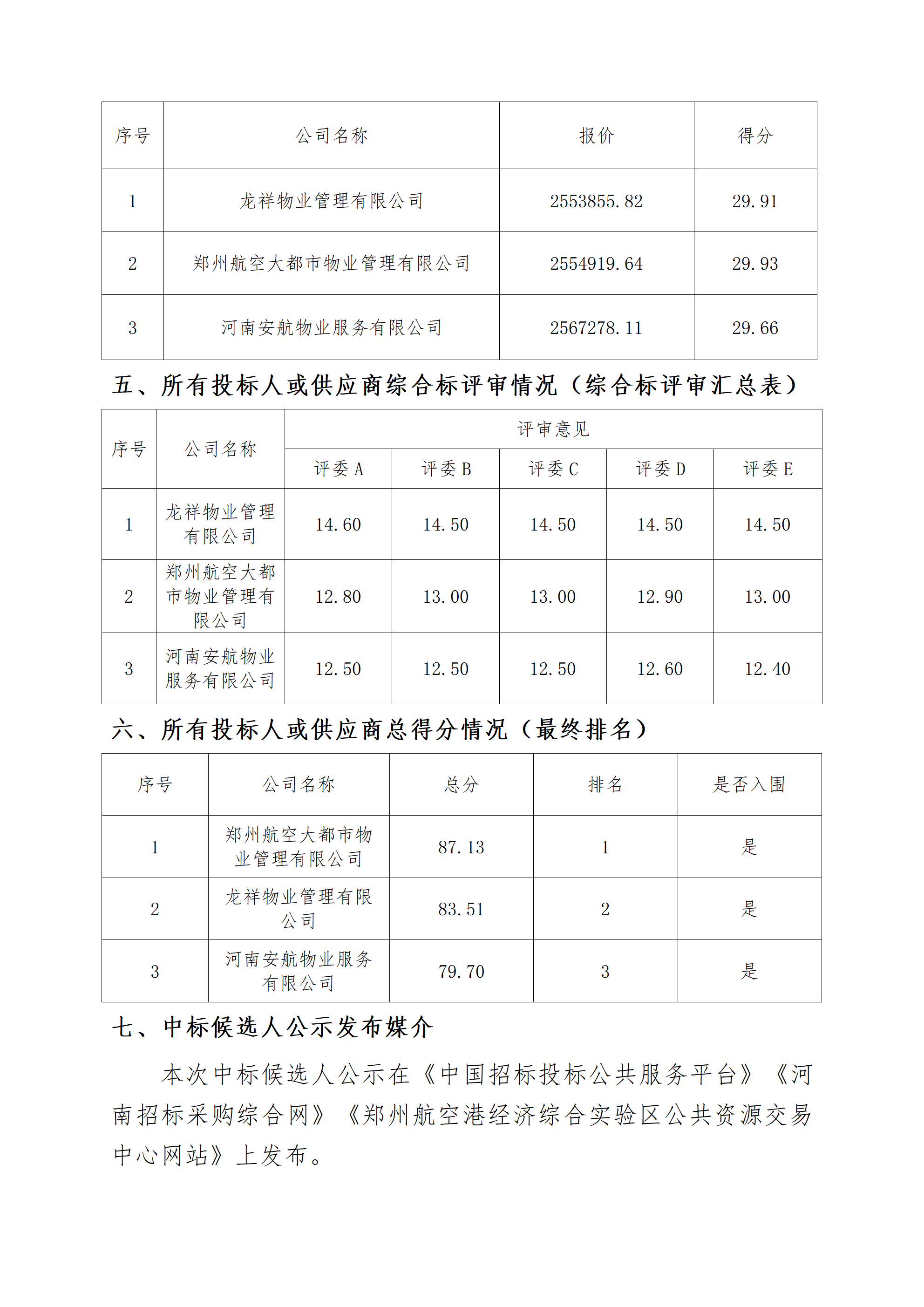 鄭州航空港市民中心物業(yè)服務(wù)項目中標(biāo)候選人公示