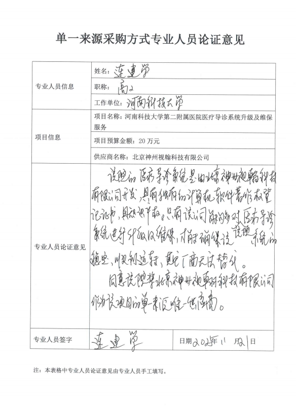 4.采用單一來源采購(gòu)方式的原因及說明:我院現(xiàn)有的醫(yī)療導(dǎo)診系統(tǒng)(排隊(duì)叫號(hào)系統(tǒng))是北京神州視翰科技有限公司的產(chǎn)品,隨著我院智慧門診、智慧服務(wù)的推進(jìn),老的系統(tǒng)功能已經(jīng)不能滿足新的管理需求,迫切需要進(jìn)行系統(tǒng)升級(jí)。升級(jí)后可以實(shí)現(xiàn)統(tǒng)一管理多個(gè)分診臺(tái)、實(shí)現(xiàn)醫(yī)師主動(dòng)選擇叫號(hào)、優(yōu)化一個(gè)醫(yī)師多隊(duì)列叫號(hào),可以使用叫號(hào)器登錄記錄進(jìn)行考勤、更強(qiáng)大的統(tǒng)計(jì)分析等。為了確保技術(shù)支持和系統(tǒng)工作與現(xiàn)有系統(tǒng)保持高度一致,實(shí)現(xiàn)無縫連接,滿足系統(tǒng)持續(xù)、系統(tǒng)升級(jí)的要求。本項(xiàng)目符合《中華人民共和國(guó)政府采購(gòu)法》第三十一條第一款之規(guī)定“只能從唯一供應(yīng)商處采購(gòu)的”,故邀請(qǐng)北京神州視翰科技有限公司進(jìn)行單一來源采購(gòu)。