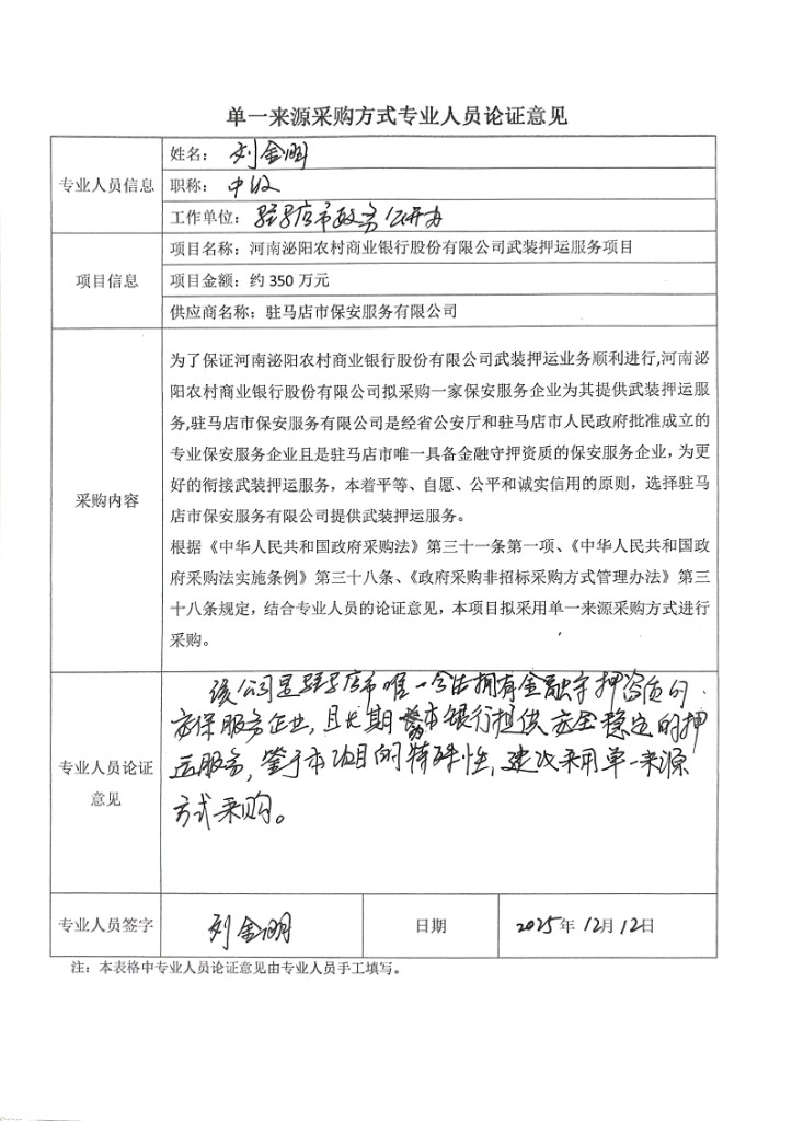 為了保證河南泌陽農(nóng)村商業(yè)銀行股份有限公司武裝押運業(yè)務(wù)順利進行,河南泌陽農(nóng)村商業(yè)銀行股份有限公司擬采購一家保安服務(wù)企業(yè)為其提供武裝押運服務(wù),駐馬店市保安服務(wù)有限公司是經(jīng)省公安廳和駐馬店市人民政府批準成立的專業(yè)保安服務(wù)企業(yè)且是駐馬店市唯一具備金融守押資質(zhì)的保安服務(wù)企業(yè),為更好的銜接武裝押運服務(wù),本著平等、自愿、公平和誠實信用的原則,選擇駐馬店市保安服務(wù)有限公司提供武裝押運服務(wù)。