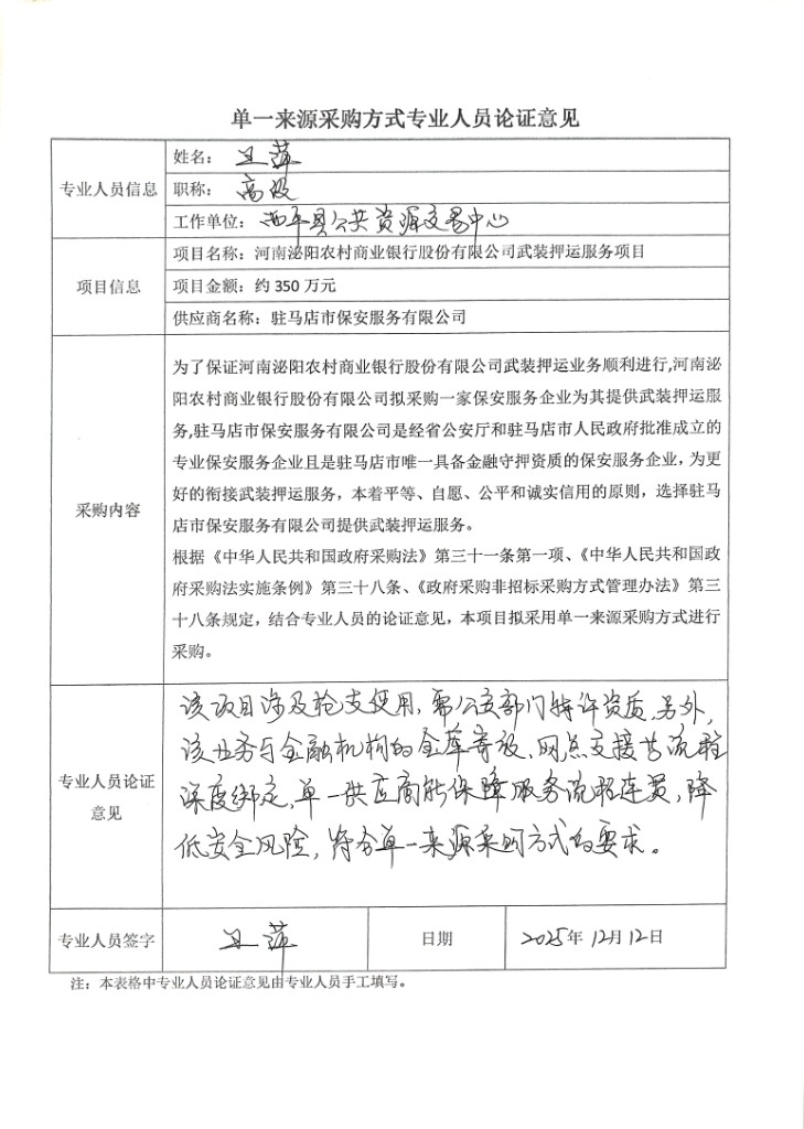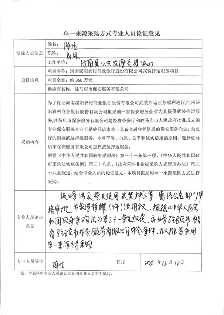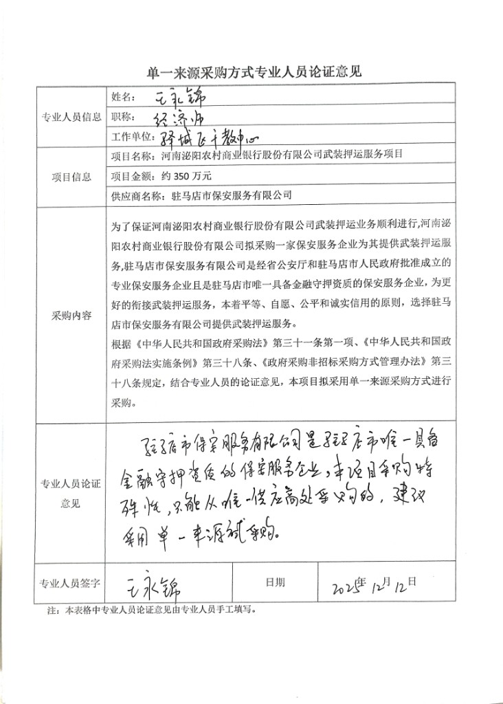 1.項目名稱:河南泌陽農(nóng)村商業(yè)銀行股份有限公司武裝押運服務(wù)項目