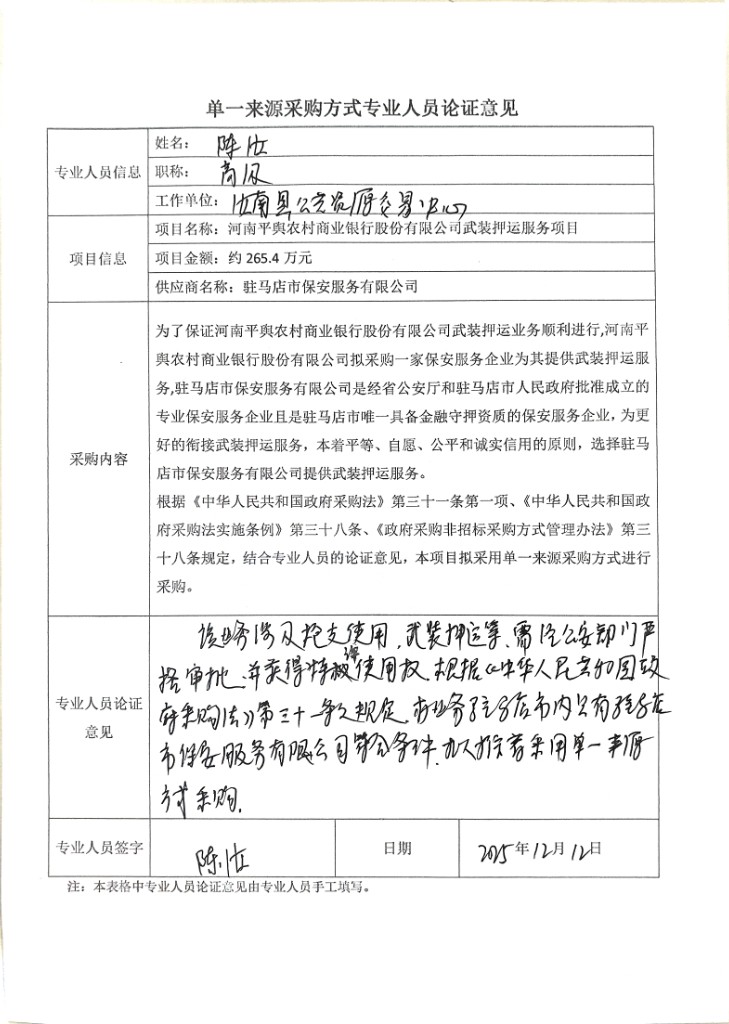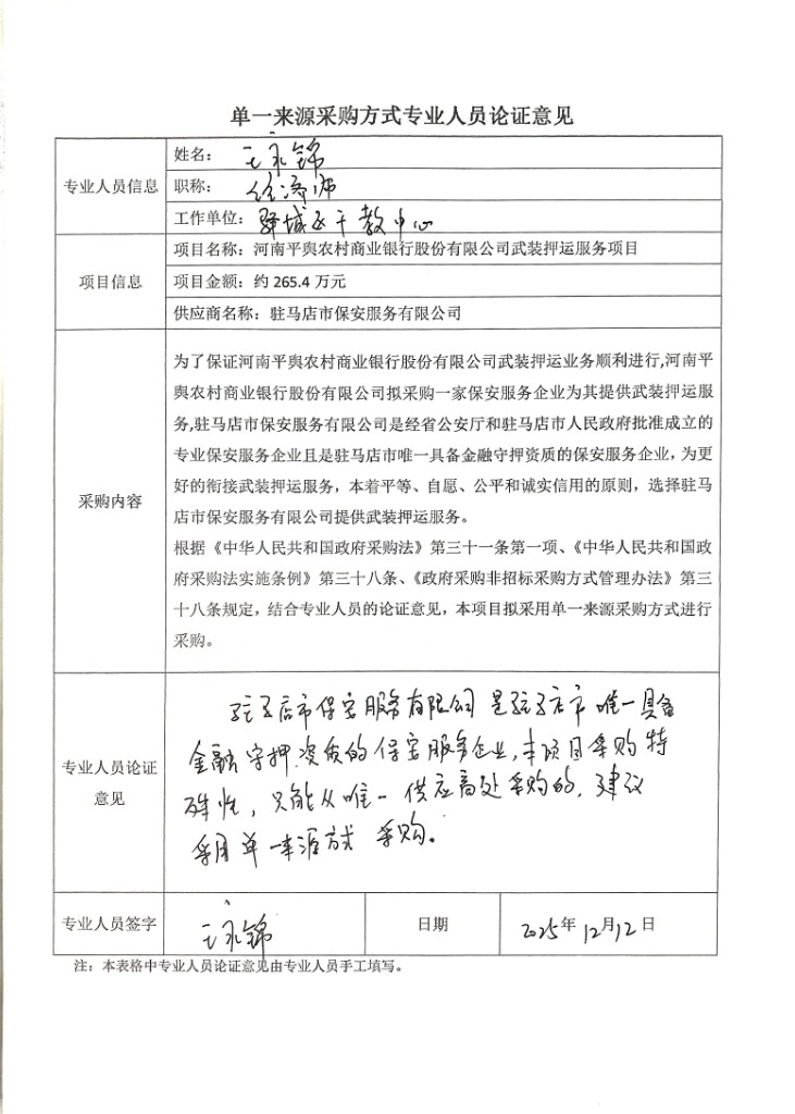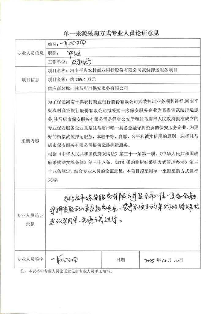 1.項(xiàng)目名稱:河南平輿農(nóng)村商業(yè)銀行股份有限公司武裝押運(yùn)服務(wù)項(xiàng)目
