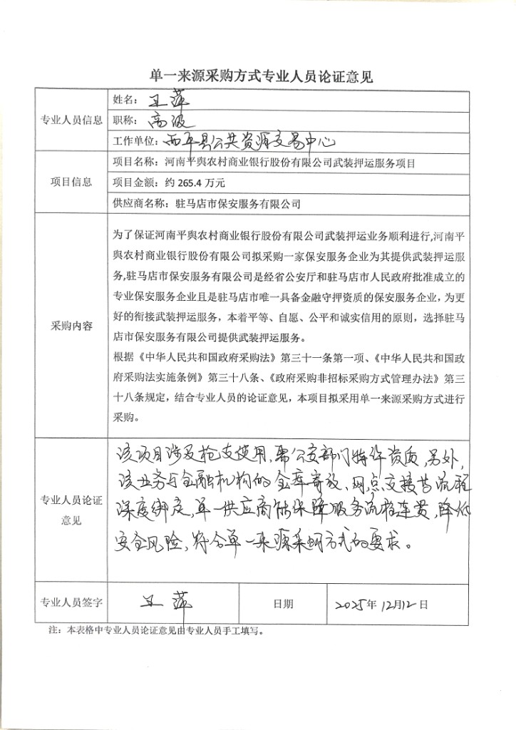 王萍 | 西平縣公共資源交易中心 | 高級(jí) | 專(zhuān)家論證意見(jiàn)附件 |
