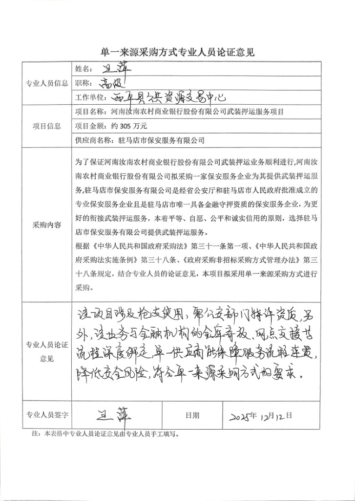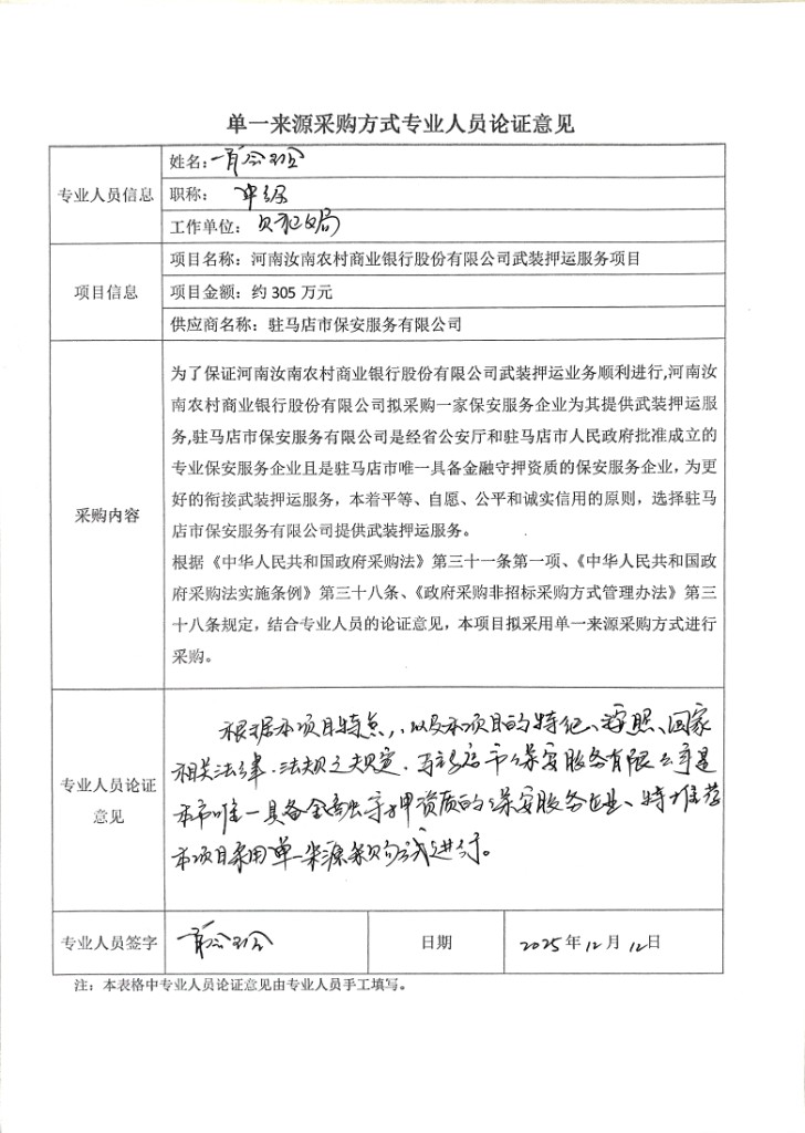 為了保證河南汝南農(nóng)村商業(yè)銀行股份有限公司武裝押運(yùn)業(yè)務(wù)順利進(jìn)行,河南汝南農(nóng)村商業(yè)銀行股份有限公司擬采購(gòu)一家保安服務(wù)企業(yè)為其提供武裝押運(yùn)服務(wù),駐馬店市保安服務(wù)有限公司是經(jīng)省公安廳和駐馬店市人民政府批準(zhǔn)成立的專業(yè)保安服務(wù)企業(yè)且是駐馬店市唯一具備金融守押資質(zhì)的保安服務(wù)企業(yè),為更好的銜接武裝押運(yùn)服務(wù),本著平等、自愿、公平和誠(chéng)實(shí)信用的原則,選擇駐馬店市保安服務(wù)有限公司提供武裝押運(yùn)服務(wù)。