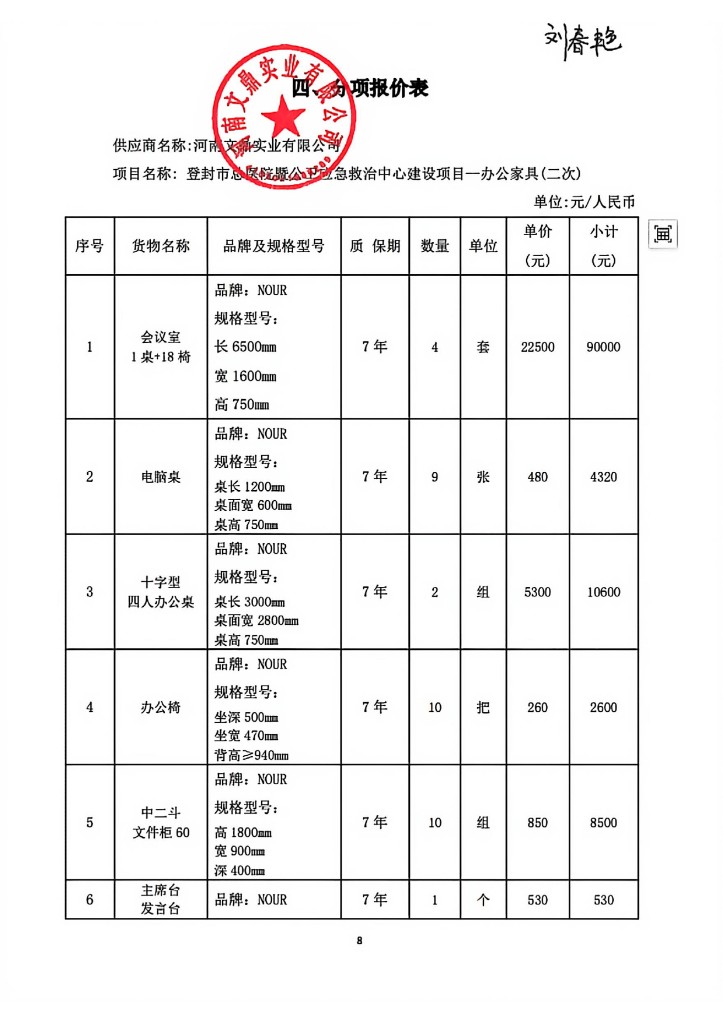 1 | 登封市總醫(yī)院暨公衛(wèi)應(yīng)急救治中心建設(shè)項目--辦公家具(二次)