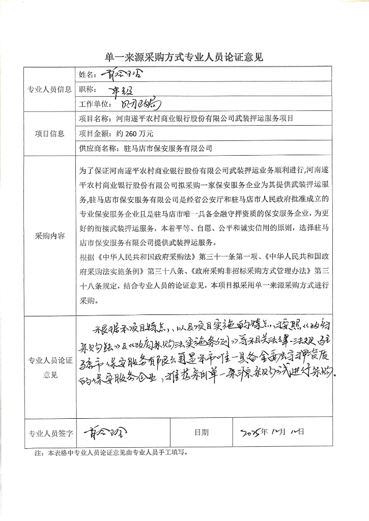 1.項(xiàng)目名稱:河南遂平農(nóng)村商業(yè)銀行股份有限公司武裝押運(yùn)服務(wù)項(xiàng)目