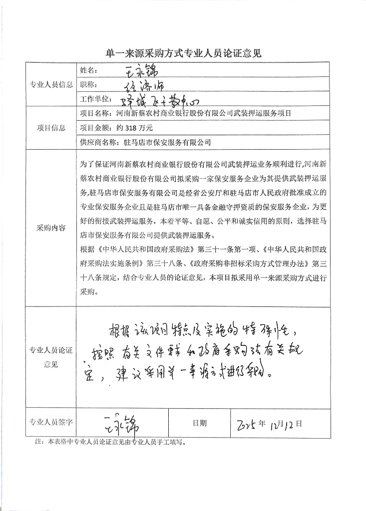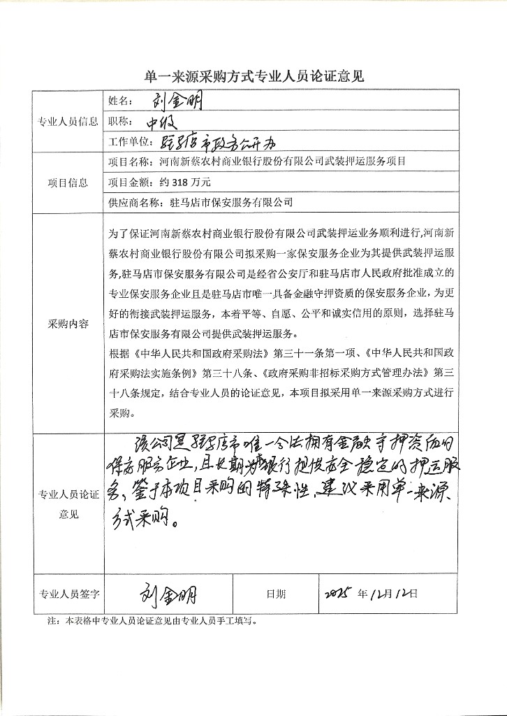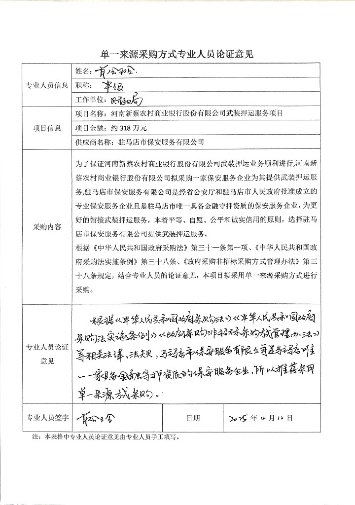 為了保證河南新蔡農(nóng)村商業(yè)銀行股份有限公司武裝押運(yùn)業(yè)務(wù)順利進(jìn)行,河南新蔡農(nóng)村商業(yè)銀行股份有限公司擬采購(gòu)一家保安服務(wù)企業(yè)為其提供武裝押運(yùn)服務(wù),駐馬店市保安服務(wù)有限公司是經(jīng)省公安廳和駐馬店市人民政府批準(zhǔn)成立的專(zhuān)業(yè)保安服務(wù)企業(yè)且是駐馬店市唯一具備金融守押資質(zhì)的保安服務(wù)企業(yè),為更好的銜接武裝押運(yùn)服務(wù),本著平等、自愿、公平和誠(chéng)實(shí)信用的原則,選擇駐馬店市保安服務(wù)有限公司提供武裝押運(yùn)服務(wù)。