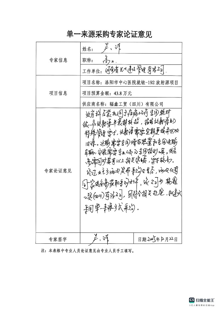 4.單一來(lái)源原因及相關(guān)說(shuō)明:經(jīng)公開(kāi)發(fā)布采購(gòu)公告二次后,僅有一家供應(yīng)商獲取采購(gòu)文件,該公司為“輻鑫工貿(mào)(四川)有限公司”擬采用單一來(lái)源方式采購(gòu)。
