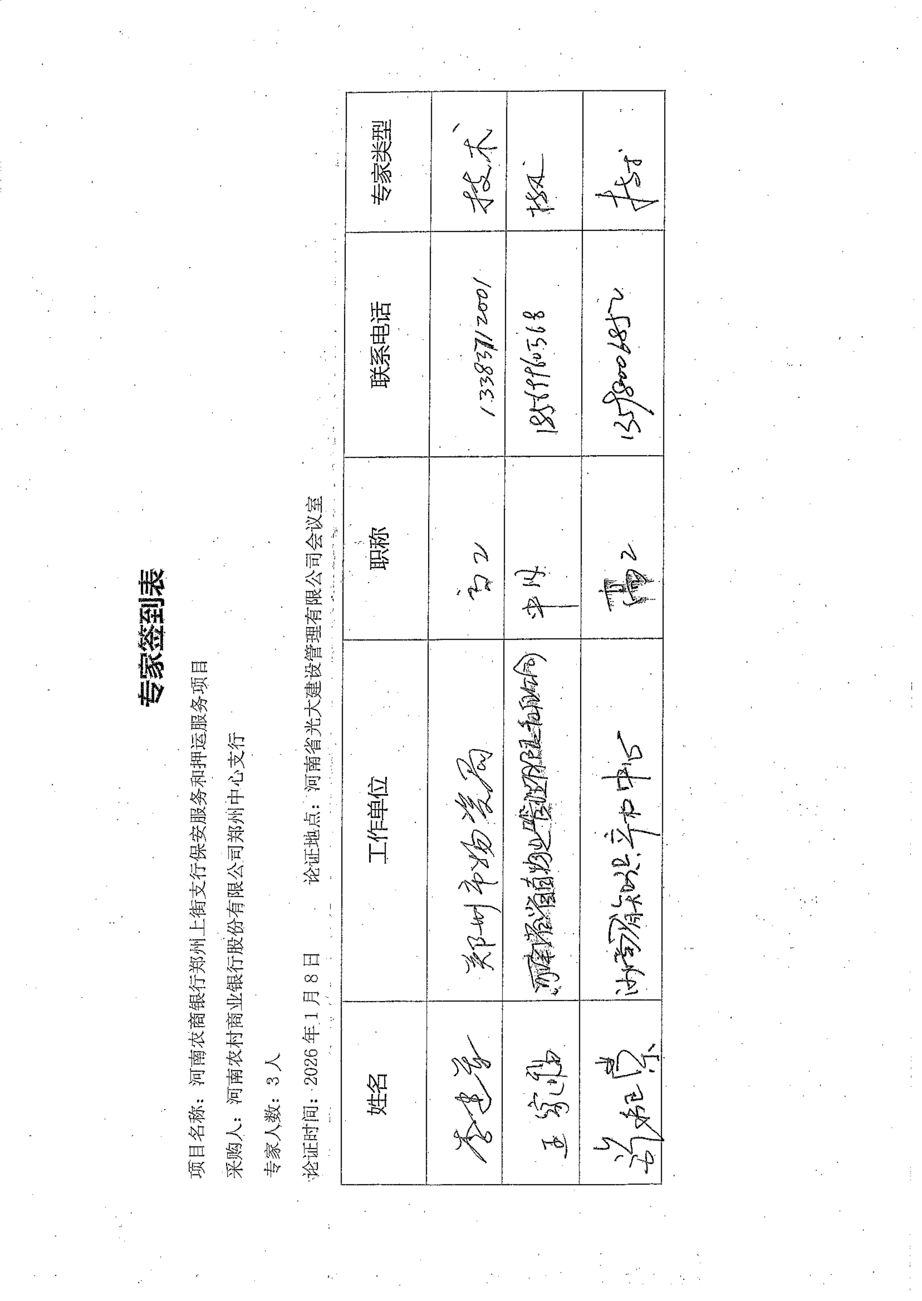 1.項目名稱:河南農商銀行鄭州上街支行保安服務和押運服務項目