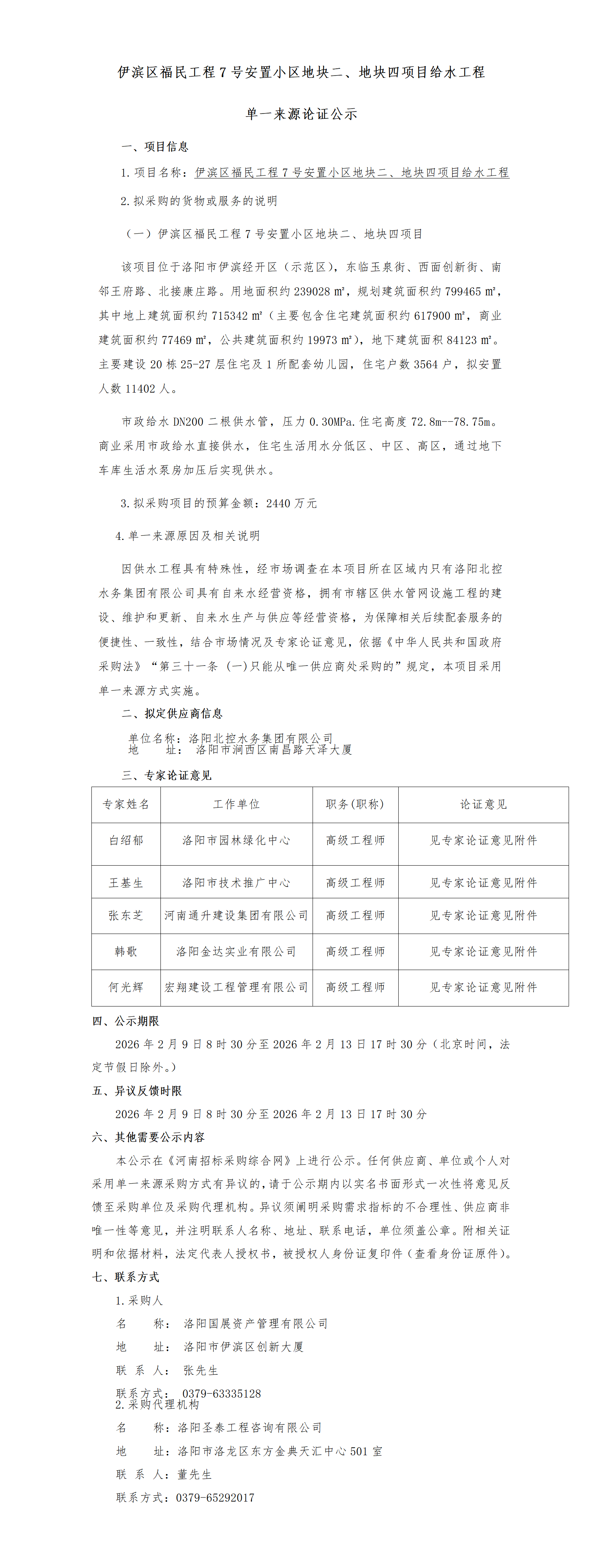 伊濱區(qū)福民工程7號(hào)安置小區(qū)地塊二、地塊四項(xiàng)目給水工程 單一來源論證公示